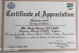 রবিবার সকালে সাতক্ষীরা জেলা পুলিশ লাইন্সের ড্রিলসেডে অনুষ্ঠিত অপরাধ পর্যালোচনা সভায় তিনি জেলা ডিবির শ্রেষ্ঠ এসআই হিসাবে পুলিশ সুপারের নিকট থেকে সন্মাননা ক্রেস্ট গ্রহণ করেন।ডিবি পুলিশের সূত্র জানায় সেপ্টেম্বর মাসে এসআই ফরিদ দেশীয় তৈরি পাইপগান-গুলি সহ দুটো হাত বোমা উদ্ধার করেন।এছাড়া সেপ্টেম্বর মাসে কয়েক ধাপে অভিযান চালিয়ে তিনি বিপুল পরিমান ফেন্সিডিল সহ চোরাইমটর সাইকেল উদ্ধার করেন। আর এসব ব্যক্তিগত পারফরমেন্স ও দক্ষার ভিত্তিতে সাতক্ষীরা জেলা পুলিশ সুপার মোহাম্মদ মোস্তাফিজুর রহমান পিপিএম(বার) তাকে ডিবির চৌকস এসআই হিসাবে সন্মাননা প্রদান করেন।