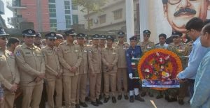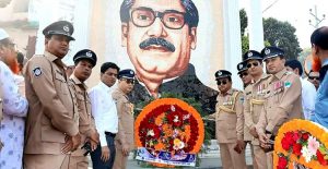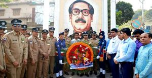 ঐতিহাসিক ৭ই মার্চ উপলক্ষে বঙ্গবন্ধুর প্রতিকৃতিতে সাতক্ষীরা জেলা পুলিশের শ্রদ্ধা