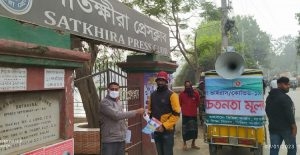 মঙ্গলবার সকাল থেকে একটি ইজিবাইকে মাইক বেঁধে বাস টার্মিনাল, প্রেস ক্লাব, লাবনী মোড়, বড়বাজারসহ বিভিন্ন জনসমাগম মাইকিং করে জনগণ কে সচেতন করছেন।মাইকিংয়ের পাশাপাশি দেওয়ালে স্টিকার লাগানো, লিফলেট বিতরণ এবং মাক্স বিতরণ করা হয়।