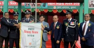 খুলনায় যথাযোগ্য মর্যাদায় আজ (শনিবার) মহান বিজয় দিবস-২০২৩ উদযাপিত হয়। এ উপলক্ষে সূর্যোদয়ের সাথে সাথে গল্লামারী শহিদ স্মৃতিসৌধে পুষ্পমাল্য অর্পণ করা হয়। প্রত্যুষে খুলনা মেট্রোপলিটন পুলিশ লাইনে ৩১বার তোপধ্বনির মধ্যদিয়ে দিবসের শুভ সূচনা করা হয়। সূর্যোদয়ের সাথে সাথে সরকারি, আধাসরকারি, স্বায়ত্তশাসিত এবং বেসরকারি ভবন ও প্রতিষ্ঠানসমূহে জাতীয় পতাকা উত্তোলন এবং শহরের প্রধান প্রধান সড়ক ও সড়ক দ্বীপসমূহ জাতীয় পতাকা দ্বারা সজ্জিত করা হয়।