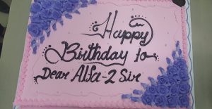 এসময় অফিসার ইনচার্জ গণ তাদের প্রিয় আলফা টু স্যার সজীব খান কে ফুলেল শুভেচ্ছা জানান। পরে অফিসার ইনচার্জ গণ সজীব খান কে সাথে নিয়ে জন্ম দিনের কেক টি কেটে সজীব খানের গালে কেক তুলে দেন।