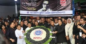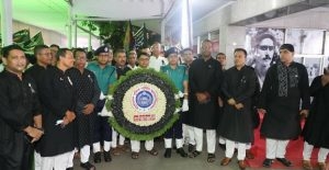 জাতীয় শোক দিবস-২০২৩ ও জাতির পিতা বঙ্গবন্ধু শেখ মুজিবুর রহমান এঁর ৪৮তম শাহাদাত বার্ষিকী উপলক্ষে তাঁর প্রতিকৃতিতে পুষ্পস্তবক অর্পণের মাধ্যমে শ্রদ্ধা জানিয়েছে বাংলাদেশ পুলিশ সার্ভিস অ্যাসোসিয়েশন।