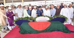 পরে আজ বাদ আসর রাজধানীর মধুবাজার জামে মসজিদে মরহুমের তৃতীয় ও শেষ জানাযা অনুষ্ঠিত হয়। মরহুমকে আজিমপুর কবরস্থানে দাফন করা হয়েছে।
