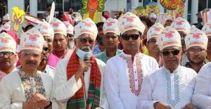 এর আগে কেসিসি’র মেয়র তালুকদার আব্দুল খালেকের নেতৃত্বে রেলওয়ে স্টেশন প্রাঙ্গণ থেকে বর্ণাঢ্য মঙ্গল শোভাযাত্রা বের হয়ে বিভিন্ন সড়ক প্রদক্ষিণ করে জেলা শিল্পকলা একাডেমিতে গিয়ে শেষ হয়। শোভাযাত্রায় সরকারি-বেসরকারি দপ্তরের কর্মকর্তা, বিভিন্ন সামাজিক সংগঠন, শিক্ষক-শিক্ষার্থীসহ বিভিন্ন শ্রেণি পেশার জনগণ অংশ নেন।