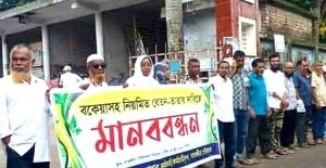 পৌরসভার পানি সরবরাহ শাখার কর্মচারীদের বকেয়া সহ নিয়মিত বেতন ভাতার দাবিতে মানববন্ধন