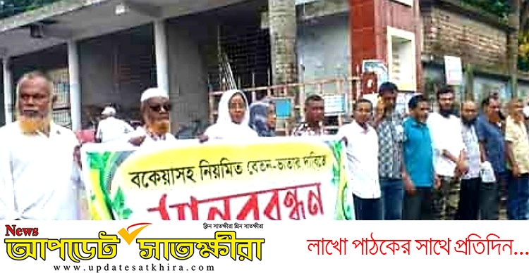 সাতক্ষীরা পৌর সভার পানি সরবরাহ শাখার কর্মচারীদের বকেয়াসহ নিয়মিত বেতন ভাতার দাবিতে মানববন্ধন অনুষ্ঠিত হয়েছে। পানি সরবরাহ শাখার কর্মকর্তা কর্মচারীবৃন্দের আয়োজনে রবিবার সকালে  পৌর সভার মূল ফটকের সামনে উক্ত মানববন্ধন অনুষ্ঠিত হয় ।