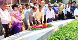 বৃহস্পতিবার (১২ অক্টোবর) সকাল পৌনে ১০টায় জাতির পিতা বঙ্গবন্ধু শেখ মুজিবুর রহমানের সমাধি সৌধের বেদীতে ফুল দিয়ে শ্রদ্ধা জানান তিনি। পরে তিনি বেদীর পাশে কিছুক্ষণ নীরবে দাঁড়িয়ে থেকে মহান নেতার প্রতি সম্মান প্রদর্শন করেন।