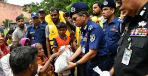 বানভাসি মানুষের মাঝে ত্রাণ বিতরণ করলেন আইজিপি