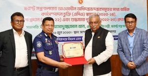 মাননীয় স্বরাষ্ট্রমন্ত্রী আসাদুজ্জামান খান, এমপি আজ (২৬ জুন) অপরাহ্নে স্বরাষ্ট্র মন্ত্রণালয়ের সম্মেলন কক্ষে আনুষ্ঠানিকভাবে আইজিপির হাতে এ পুরস্কার তুলে দেন।
