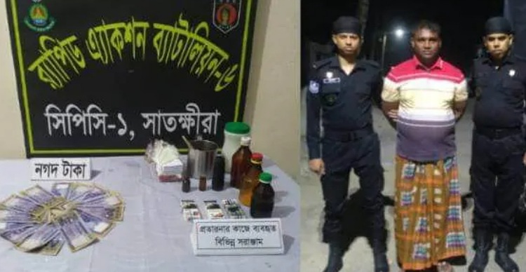 শ্যামনগর উপজেলার কাশিমাড়ীতে টাকা দ্বিগুণ করে দেওয়ার প্রলোভন দেখিয়ে ২০ লক্ষ টাকা আত্মসাতের অভিযোগে মোঃ এবাদুল সরদার (৩৬) নামের এক প্রতারক চক্রের মূলহোতাকে আটক করেছে র‌্যাব-৬। এসময় র‌্যাবের উপস্থিতি টের পেয়ে এবাদুলের দুই সহযোগী গোলাম হোসেন ও বাবলু পালিয়ে গেছে। গতকাল উপজেলার কাশিমাড়ী ঘোলা এলাকায় অভিযান চালিয়ে প্রতারক এবাদুলকে গ্রেফতার করা হয় এবং তার কাছ থেকে নগদ ১৪ হাজার টাকা সহ প্রতারণার কাজে ব্যবহৃত বিভিন্ন সরঞ্জাম জব্দ করা হয়। এবিষয়ে এক প্রেস বিজ্ঞপ্তিতে র‌্যাব-৬ (সাতক্ষীরা) জানায়, এবাদুল সরদার নামের ওই প্রতারক সাধারণ মানুষকে কৌশলে বোকা বানাতেন। টাকা দ্বিগুণ করে দেওয়ার ম্যাজিক দেখানোর নামে সে তার কাছে থাকা আসল টাকা ব্যবহার করে প্রথমে বেশ কয়েকজনের বিশ্বাস অর্জন করে। এরপর ওই ব্যক্তিরা যখন বড় অংকের টাকা তার কাছে দেয় তখন সে নানাভাবে সময়ক্ষেপন করে এবং একপর্যায়ে হুমকি দিতে থাকে। ভুক্তভোগী যশোর ঝিকরগাছার মোঃ আলী হোসেন সেন্টু ও মোঃ আবুল কাশেমের কাছ থেকে এবাদুল সরদার বিভিন্ন সময় ২০ লক্ষ টাকা হাতিয়ে নিয়েছে বলে অভিযোগ রয়েছে। এই অভিযোগের পরিপ্রেক্ষিতে প্রতারক এবাদুল সরদার কে গ্রেফতার করা হয়। গ্রেফতারকৃত এবাদুল সরদার উপজেলার কাশিবাড়ী ঘোলা গ্রামের গোলাম হোসেন সরদারের পুত্র। গ্রেফতারকৃত এবাদুল সরদারকে শ্যামনগর থানায় হস্তান্তর করা হয়েছে। এ বিষয়ে থানা অফিসার ইনচার্জ মোঃ নূরুল ইসলাম বাদল ঘটনা সত্যতা নিশ্চিত করে দৈনিক দৃষ্টিপাতকে জানান, প্রতারণার অভিযোগে র‌্যাব-৬ একজনকে আটক করে শ্যামনগর থানায় হস্তান্তর করেছে। তার বিরুদ্ধে ভুক্তভোগী মোঃ আলী হোসেন সেন্টু একটি প্রতারণা মামলা করেছে। গ্রেফতারকৃত আসামিকে বিজ্ঞ আদালতে প্রেরণ করা হয়েছে।