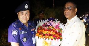 রবিবার ২২ অক্টোবর ২০২৩ খ্রিঃ তারিখে খুলনা রেঞ্জের ডিআইজি মঈনুল হক বিপিএম (বার), পিপিএম সাতক্ষীরা জেলার সদর থানাধীন ঐতিহ্যবাহী মায়ের মন্দির পুজা মন্ডপ পরিদর্শন করেন। এ সময় রেঞ্জ ডিআইজি কে ফুলেল শুভেচ্ছা জানান সাতক্ষীরা জেলা পুলিশ সুপার কাজী মনিরুজ্জামান পিপিএম ও পুজা উদযাপন কমিটির সদস্যরা।