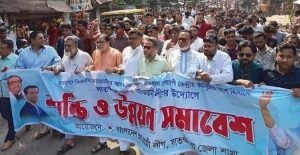 এরআগে সেখানে জেলা আওয়ামী লীগের সভাপতি সাবেক সংসদ সদস্য একে ফজলুল হকের সভাপতিত্বে শান্তি সমাবেশ অনুষ্ঠিত হয়। সমাবেশে বক্তব্য রাখেন জেলা আওয়ামী লীগের সাধারণ সম্পাদক ও জেলা পরিষদ চেয়ারম্যান মো. নজরুল ইসলাম, সহসভাপতি অধ্যক্ষ আবু আহমেদ, যুগ্ম-সম্পাদক ও সদর উপজেলা পরিষদ চেয়ারম্যান আসাদুজ্জামান বাবু, আইন বিষয়ক সম্পাদক এড. ওসমান গনি, সাংগঠনিক সম্পাদক কাজী আকতার হোসেন, শিল্প ও বাণিজ্য সম্পাদক শেখ এজাজ আহমেদ স্বপন, ডা. মুনসুর আহমেদ, শিক্ষা ও মানব সম্পদ উন্নয়ন বিষয়ক সম্পাদক লায়লা পারভীন সেঁজুতি, পৌর আওয়ামী লীগের সাধারণ সম্পাদক শাহাদাত হোসেন, জেলা যুবলীগের আহবায়ক মিজানুর রহমান, ছাত্রলীগের সভাপতি আশিকুর রহমান আশিক, যুব মহিলা লীগের সাধারণ সম্পাদক সীমা সিদ্দিকী, বাস মিনিবাস মালিক সমিতির সাধারণ সম্পাদক স ম গোলাম মোরশেদ প্রমুখ বক্তব্য রাখেন।
