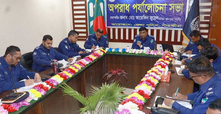 সাতক্ষীরা জেলা পুলিশের মাসিক অপরাধ পর্যালোচনা সভা অনুষ্ঠিত হয়েছে।আজ ০৮ জানুয়ারি ২০২৬ খ্রিঃ তারিখে পুলিশ সুপারের কার্যালয়, সাতক্ষীরার সম্মেলন কক্ষে ডিসেম্বর-২০২৫ মাসের অপরাধ পর্যালোচনা সভা অনুষ্ঠিত হয়। উক্ত সভায় সভাপতিত্ব করেন সাতক্ষীরা জেলা পুলিশ সুপার মোহাম্মদ মনিরুল ইসলাম। অপরাধ পর্যালোচনা সভায় সাতক্ষীরা জেলার ডিসেম্বর-২০২৫ মাসের অপরাধ পরিসংখ্যান,আইন-শৃঙ্খলা পরিস্থিতি,মামলা রুজু ও নিষ্পত্তি গুরুত্বপূর্ণ মামলা সমূহের তদন্তের অগ্রগতি, ওয়ারেন্ট ও সমন তামিল, আলামত ও অপমৃত্যু মামলার দ্রুত নিষ্পত্তি, ট্রাফিক আইনের প্রয়োগ ইত্যাদি বিষয় আলোচনা করা হয়। জেলার আইন শৃঙ্খলা পরিস্থিতি স্বাভাবিক রাখতে গোয়েন্দা নজরদারির উপর জোর দিয়ে আগাম তথ্য সংগ্রহের প্রতি পুলিশ সুপার গুরুত্বারোপ করেন। জেলার আইনশৃঙ্খলা পরিস্থিতি সমুন্নত রাখতে সকল সার্কেল অফিসার ও থানার অফিসার ইনচার্জদের পুলিশ সুপার মহোদয় নিয়মিত মাদক ও সন্ত্রাস বিরোধী অভিযান পরিচালনা করাসহ বিভিন্ন দিক-নির্দেশনা প্রদান করেন।