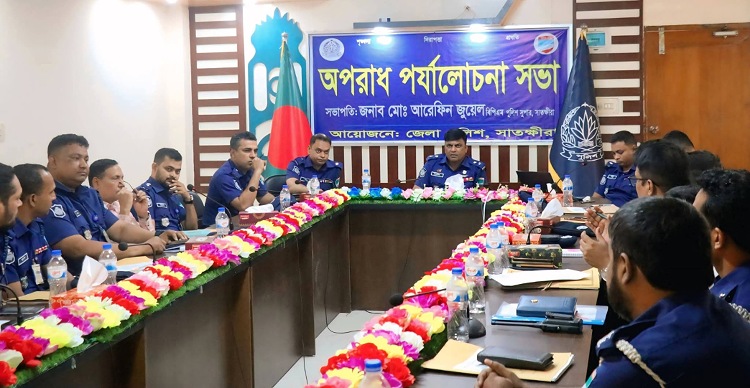 অপরাধ পর্যালোচনা সভায় সাতক্ষীরা জেলার মার্চ-২০২৬ মাসের অপরাধ পরিসংখ্যান,আইন-শৃঙ্খলা পরিস্থিতি,মামলা রুজু ও নিষ্পত্তি,গুরুত্বপূর্ণ মামলা সমূহের তদন্তের অগ্রগতি, ওয়ারেন্ট ও সমন তামিল,আলামত ও অপমৃত্যু মামলার দ্রুত নিষ্পত্তি, ট্রাফিক আইনের প্রয়োগ ইত্যাদি বিষয় আলোচনা করা হয়। জেলার আইন শৃঙ্খলা পরিস্থিতি স্বাভাবিক রাখতে গোয়েন্দা নজরদারির উপর জোর দিয়ে আগাম তথ্য সংগ্রহের প্রতি পুলিশ সুপার মহোদয় গুরুত্বারোপ করেন। জেলার আইনশৃঙ্খলা পরিস্থিতি সমুন্নত রাখতে সকল সার্কেল অফিসার ও থানার অফিসার ইনচার্জদের পুলিশ সুপার মহোদয় নিয়মিত মাদক ও সন্ত্রাস বিরোধী অভিযান পরিচালনা করাসহ বিভিন্ন দিক-নির্দেশনা প্রদান করেন।