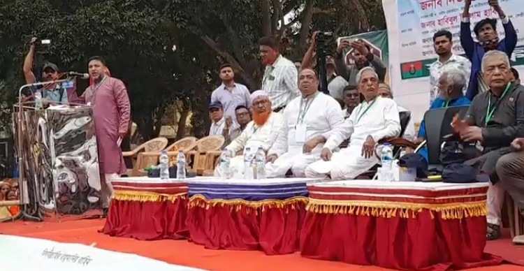 সাতক্ষীরা জেলা বিএনপির উদ্যোগে বিশাল জনসভা অনুষ্ঠিত হয়েছে। মঙ্গলবার বিকাল চারটায় শহীদ আব্দুর রাজ্জাক পার্কে জেলা বিএনপির আহবায়ক রহমতুল্লাহ পলাশের সভাপতিত্বে জনসভায় প্রধান অতিথি হিসেবে বক্তব্য রাখেন সাবেক মন্ত্রী ও বাংলাদেশ জাতীয়তাবাদী দল কেন্দ্রীয় নির্বাহী কমিটির ভাইস চেয়ারম্যান নিতাই রায় চৌধুরী । এ সময় তিনি বলেন, জনগণের প্রতি প্রতিহিংসা পরায়ণ হওয়া যাবে না। দেশে শান্তি শৃঙ্খলা বজায় রাখার জন্য নিজেদেরকে সচেতন হতে হবে। অন্তর্বর্তীকালীন সরকারের উপর আমাদের দৃঢ় আস্থা ও সমর্থন রয়েছে। এই সরকারকে নির্বাচনের একটা সুনির্দিষ্ট রোড ম্যাপ দিতে হবে। বিগত ১৫ বছরে আওয়ামী লীগ দেশের অর্থ লুটপাট করেছে। বিরোধী দলকে দমন , খুন ও গুমের মাধ্যমে নিষ্ক্রিয় করে রেখেছিল। কিন্তু বাংলাদেশ জাতীয়তাবাদী দলের নেতাকর্মীদের বহু ত্যাগ ও রক্তের বিনিময়ে দলকে টিকিয়ে রেখেছে। তারেক রহমানের নেতৃত্বে ছাত্রজনতা ৫ আগস্ট ছাত্র আন্দোলনের মধ্য দিয়ে ফ্যাসিস্ট সরকারের পতন ঘটিয়েছে। আপনারা বাংলাদেশ জাতীয়তাবাদী দলকে ভোট দিয়ে দেশের স্থিতিশীল অবস্থা ফিরিয়ে আনতে সহায়তা করবেন। প্রধান বক্তা হিসাবে বক্তব্য রাখেন সাবেক এমপি ও বাংলাদেশ জাতীয়তাবাদী দল কেন্দ্রীয় নির্বাহী কমিটির প্রকাশনা বিষয়ক সম্পাদক হাবিবুল ইসলাম হাবিব। বিশেষ অতিথি হিসেবে বক্তব্য রাখেন সাবেক এমপি ও বাংলাদেশ জাতীয়তাবাদী দল কেন্দ্রীয় নির্বাহী কমিটির সদস্য কাজী আলাউদ্দিন, কেন্দ্রীয় নির্বাহী কমিটির সদস্য ডাঃ মোঃ শহিদুল আলম, সাতক্ষীরা জেলা বিএনপির সাবেক আহবায়ক এড সৈয়দ ইফতেখার আলী, সাবেক সদস্য সচিব মোঃ আব্দুল আলীম, সাবেক যুগ্ম আহবায়ক হাবিবুর রহমান হাবিব, শেখ তরিকুল হাসান, বাবু মৃণাল কান্তি রায়, যুগ্ম আহবায়ক আবুল হাসান হাদী, তাসকিন আহমেদ চিশতী, ডঃ মনিরুজ্জামান, আক্তারুল ইসলাম। এর পূর্বে পবিত্র কোরআন তেলাওয়াত করেন হাফেজ কামরুল ইসলাম ও গীতা পাঠ করেন বিজ্ঞ সরকারি কৌশুলী ( জিপি ) এড,অসীম কুমার মন্ডল। অন্যান্যদের মধ্যে বক্তব্য রাখেন ও উপস্থিত ছিলেন সদর উপজেলা বিএনপির সাবেক আহবায়ক এড নুরুল ইসলাম, সাবেক সদস্য সচিব নূরে আলম সিদ্দিকী, দেবহাটা উপজেলা বিএনপি’র সাবেক আহবায়ক সিরাজুল ইসলাম, সাবেক সদস্য সচিব মহিউদ্দিন সিদ্দিকী, আশাশুনি উপজেলা বিএনপির সাবেক আহবায়ক হেদায়েতুল ইসলাম, সাবেক সদস্য সচিব মশিউর রহমান তুহিন, কালিগঞ্জ উপজেলা বিএনপি’র সাবেক আহবায়ক এবাদুল ইসলাম, সাবেক সদস্য সচিব শরিফুল ইসলাম, শ্যামনগর উপজেলা বিএনপির সাবেক আহবায়ক সোলায়মান, সাবেক সদস্য সচিব আলমগীর কবির, তালা উপজেলা বিএনপির সাবেক সাধারণ সম্পাদক শফিকুল ইসলাম প্রমূখ। এছাড়া জেলা বিএনপির সকল অঙ্গ ও সহযোগী সং