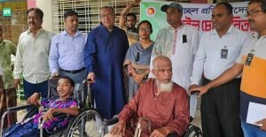 সদর উপজেলার অসচ্ছল প্রতিবন্ধীদের মাঝে হুইল চেয়ার বিতরণ করলেন এমপি রবি