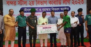 আজ মঙ্গলবার বিকালে রাজধানীর পল্টনে জাতীয় কাবাডি স্টেডিয়ামে ‘বন্দর স্টীল দ্বিতীয় বিভাগ কাবাডি লিগ-২০২৩’ এর চূড়ান্ত প্রতিযোগিতা শেষে পুরস্কার বিতরণ করা হয়। প্রতিদ্বন্দ্বিতাপূর্ণ ফাইনাল ম্যাচে আনসার ভিডিপি দল ৩৯-২৯ পয়েন্টে বিকেএসপিকে হারিয়ে চ্যাম্পিয়ন হয়।