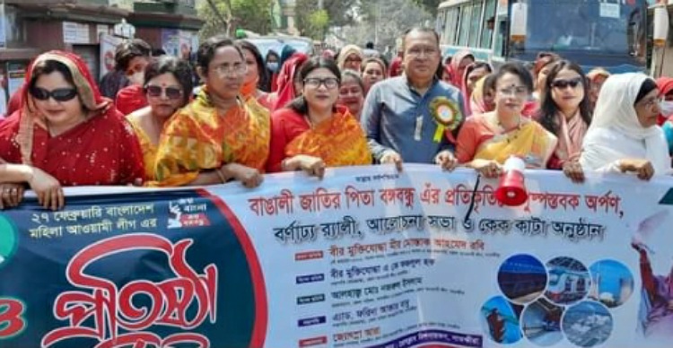 সোমবার ২৭ ফেব্রুয়ারি বেলা ১১টায় সাতক্ষীরা প্রেসক্লাবের সামনে থেকে একটি বর্ণাঢ্য র্যালি বের হয়ে শহরের গুরুত্বপূর্ণ সড়ক প্রদক্ষিণ শেষে শহিদ আব্দুর রাজ্জাক পার্কে বঙ্গবন্ধু স্মৃতি পাঠাগারে বঙ্গবন্ধুর প্রতিকৃতিতে পুষ্পার্ঘ্য অর্পণ করে শ্রদ্ধা নিবেদন করে সাতক্ষীরা প্রেসক্লাবে মহিলা আওয়ামী লীগ সাতক্ষীরা জেলা শাখার সহ-সভাপতি তহমিনা রহিম’র সভাপতিত্বে ও সাধারণ সম্পাদক ও জাতীয় মহিলা সংস্থা সাতক্ষীরা জেলা শাখার চেয়ারম্যান জ্যোৎস্না আরা’র সঞ্চালনায় কেক কাটা ও আলোচনা সভায় প্রধান অতিথির বক্তব্য রাখেন সাতক্ষীরা সদর-২ আসনের সংসদ সদস্য বীর মুক্তিযোদ্ধা মীর মোস্তাক আহমেদ রবি।