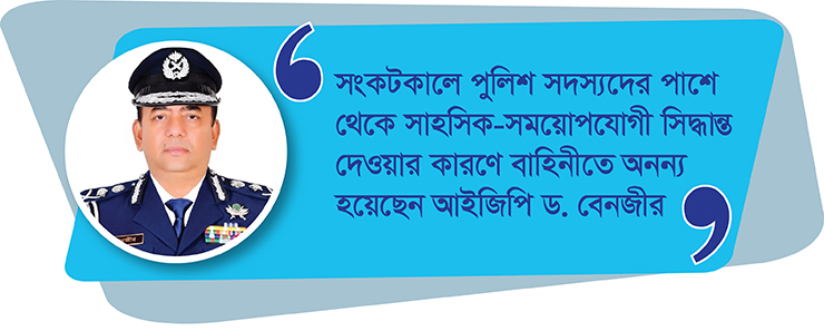 সংকটকালে পুলিশ সদস্যদের পাশে থেকে সাহসিক-সময়োপযোগী সিদ্ধান্ত দেওয়ার কারণে বাহিনীতে অনন্য হয়েছেন আইজিপি ড. বেনজীর।