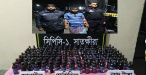 র্যাব জানায়, গতকাল ২৯ জানুয়ারি ২০২৩ তারিখ র্যাব-৬, (সাতক্ষীরা ক্যাম্প) এর একটি আভিযানিক দল গোপন সংবাদের মাধ্যমে জানতে পারে যে, সাতক্ষীরা জেলার কলারোয়া থানা এলাকায় কতিপয় ব্যক্তি মাদকদ্রব্য ক্রয়-বিক্রয়ের উদ্দেশ্যে অবস্থান করছে। প্রাপ্ত সংবাদের ভিত্তিতে আইনানুগ ব্যবস্থা গ্রহনের লক্ষ্যে আভিযানিক দলটি একই তারিখ আনুমানিক ১৬.৩০ ঘটিকার সময় সাতক্ষীরা জেলার কলারোয়া থানাধীন চন্দনপুর এলাকায় অভিযান পরিচালনা করে আসামী ১। মোঃ আব্দুল্লাহ(৩৪), থানা-কলারোয়া, জেলা-সাতক্ষীরাকে গ্রেফতার করে। এ সময় উপস্থিত সাক্ষীদের সামনে গ্রেফতারকৃত আসামীর হেফাজত হতে ১৩২ (একশত বত্রিশ) বোতল ফেন্সিডিল উদ্ধার পূর্বক জব্দ করে।