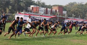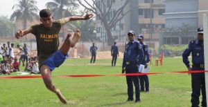 দৌড়,পুশআপ,লং জাম্প ও হাই জাম্প পরীক্ষায় সাতক্ষীরা জেলার নিয়োগ বোর্ডের সভাপতি হিসেবে উপস্থিত ছিলেন সাতক্ষীরা জেলা পুলিশ সুপার  কাজী মনিরুজ্জামান পিপিএম।
