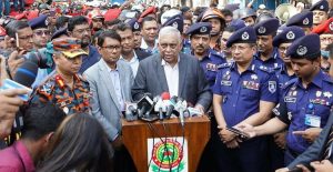স্বরাষ্ট্রমন্ত্রী বলেন, ৬টা ১০ মিনিটে যখন আগুন লাগে তার দুই-তিন মিনিটের মধ্যে ফায়ার সার্ভিসের ইউনিট এসে আগুন নিয়ন্ত্রণে কাজ শুরু করে। কিন্তু চোখের সামনে আগুন নিমিষেই প্রসারিত হয়ে যায়। ফায়ার সার্ভিসের এক্সপার্ট কর্মকর্তারা এলেও নানা কারণে তারা প্রতিবন্ধকতার সম্মুখীন হয়েছেন। পাশে পুলিশ হেডকোয়ার্টারে আগুন লেগেছিল। কিছু ক্ষতি পুলিশ হেডকোয়ার্টারেও হয়েছে। কিন্তু আগুনে চারটি মার্কেট সম্পূর্ণভাবে ধ্বংস হয়ে গেছে। আমাদের ফায়ার সার্ভিসের বেশ কয়েকজন সদস্য আহত হয়েছেন।