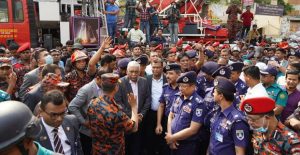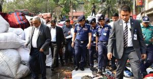 অগ্নিকাণ্ডের ঘটনাস্থল পরিদর্শনকালে স্বরাষ্ট্রমন্ত্রীর সাথে ইন্সপেক্টর জেনারেল অব পুলিশ (আইজিপি), বাংলাদেশ চৌধুরী আবদুল্লাহ আল-মামুন বিপিএম (বার), পিপিএম, স্বরাষ্ট্র মন্ত্রণালয়ের জননিরাপত্তা বিভাগের সচিব মোঃ মোস্তাফিজুর রহমান পিএএ, সুরক্ষা সেবা বিভাগের সচিব মোঃ আবদুল্লাহ আল মাসুদ চৌধুরী সহ বাংলাদেশ পুলিশ ও ফায়ার সার্ভিসের উধ্বর্তন কর্মকর্তাগণ উপস্থিত ছিলেন।