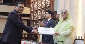 আইএমইডি সেরা দশে ৬ ষষ্ঠ স্থান অর্জন করায় প্রধানমন্ত্রীর নিকট থেকে আইএমইডি সচিবের সন্মাননা গ্রহণ