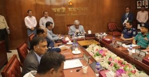 সচিবালয়ে মন্ত্রণালয়ের সম্মেলন কক্ষে এক প্রেস ব্রিফিংয়ে কথা বলছেন স্বরাষ্ট্রমন্ত্রী আসাদুজ্জামান খান।