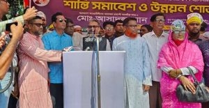 বৃহস্পতিবার (২৬ অক্টোবর) সকালে সাতক্ষীরা সদর ও জেলা আওয়ামী লীগসহ সকল অঙ্গসংগঠনের আয়োজনে সাতক্ষীরা সরকারি কলেজ মাঠে এ শান্তি সমাবেশ অনুষ্ঠিত হয়। শান্তি সমাবেশে সাতক্ষীরা সদর উপজেলা আওয়ামী লীগের সভাপতি শেখ আব্দুর রশিদের সভাপতিত্বে প্রধান অতিথি হিসেবে বক্তব্য রাখেন জেলা আওয়ামী লীগের যুগ্ম সাধারণ সম্পাদক, সদর উপজেলা চেয়ারম্যান ও দ্বাদশ জাতীয় সংসদ নির্বাচনে সাতক্ষীরা-২ আসনের আওয়ামী লীগের দলীয় মনোনয়ন প্রত্যাশী মো. আসাদুজ্জামান বাবু।