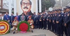 এর আগে শহরের খুলনা মোড়ে বঙ্গবন্ধুর ম্যূরালে পুষ্পস্তবক অর্পন করেন জেলা প্রশাসক ও পুলিশ সুপার সহ সরকারি ও বেসরকারি সংস্থার কর্মকর্তারা।