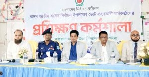 শহরের নবারুণ স্কুলে ভোট গ্রহণকারী কর্মকর্তাদের প্রশিক্ষণ কর্মশালা অনুষ্ঠিত