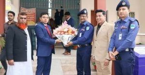 জেলা প্রশাসক ও পুলিশ সুপার অনুষ্ঠানে পৌছালে  সদর উপজেলা নির্বাচন কর্মকর্তা  মেহেদী হাসান তাঁদের কে ফুলেল শুভেচ্ছা জানান।