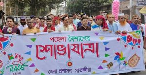 নববর্ষের ঐকতান, ফ্যাসিবাদের অবসান’ এই প্রতিপাদ্যকে সামনে রেখে সাতক্ষীরায় লুঙ্গি, গামছা, ফতুয়া, লাল শাড়ি ও বৈশাখি শাড়ি পরে বাঙালি সাজে উৎসব মুখর পরিবেশে জমকালো আয়োজনে পালিত হচ্ছে বাঙালির লোকজ ঐতিহ্য বহনকারি সাংস্কৃতিক উৎসব পহেলা বৈশাখ ও বাংলা নববর্ষ ১৪৩২।