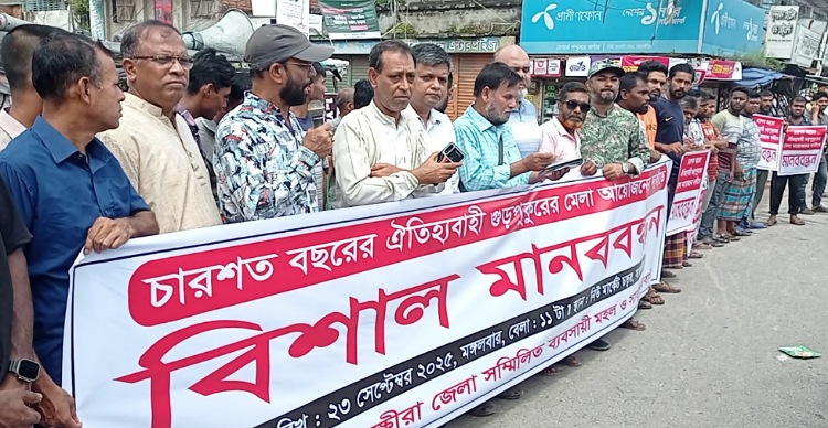 সাতক্ষীরার ঐতিহ্যবাহী গুড়পুকুরের মেলা আয়োজনের দাবীতে বিশাল মানববন্ধন
