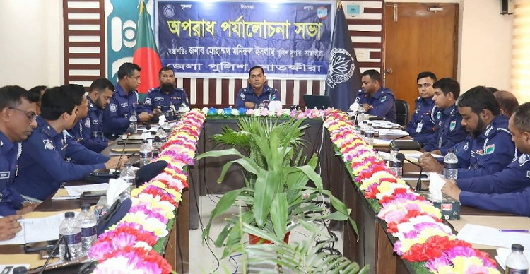 জেলা পুলিশ, সাতক্ষীরার মাসিক অপরাধ পর্যালোচনা সভা অনুষ্ঠিত হয়েছে।গতকাল  ১৬ নভেম্বর ২০২৫ খ্রিঃ তারিখে পুলিশ সুপারের কার্যালয়, সাতক্ষীরার সম্মেলন কক্ষে অক্টোবর-২০২৫ মাসের অপরাধ পর্যালোচনা সভা অনুষ্ঠিত হয়। এতে সভাপতিত্ব করেন সাতক্ষীরা জেলা পুলিশ সুপার মোহাম্মদ মনিরুল ইসলাম । অপরাধ পর্যালোচনা সভায় সাতক্ষীরা জেলার অক্টোবর-২০২৫ মাসের অপরাধ পরিসংখ্যান,আইন-শৃঙ্খলা পরিস্থিতি,মামলা রুজু ও নিষ্পত্তি,গুরুত্বপূর্ণ মামলা সমূহের তদন্তের অগ্রগতি, ওয়ারেন্ট ও সমন তামিল,আলামত ও অপমৃত্যু মামলার দ্রুত নিষ্পত্তি, ট্রাফিক আইনের প্র‍য়োগ ইত্যাদি বিষয় আলোচনা করা হয়। জেলার আইন শৃঙ্খলা পরিস্থিতি স্বাভাবিক রাখতে গোয়েন্দা নজরদারির উপর জোর দিয়ে আগাম তথ্য সংগ্রহের প্রতি পুলিশ সুপার মহোদয় গুরুত্বারোপ করেন। জেলার আইনশৃঙ্খলা পরিস্থিতি সমুন্নত রাখতে সকল সার্কেল অফিসার ও থানার অফিসার ইনচার্জদের পুলিশ সুপার মহোদয় নিয়মিত মাদক ও সন্ত্রাস বিরোধী অভিযান পরিচালনা করাসহ বিভিন্ন দিক-নির্দেশনা প্রদান করেন।